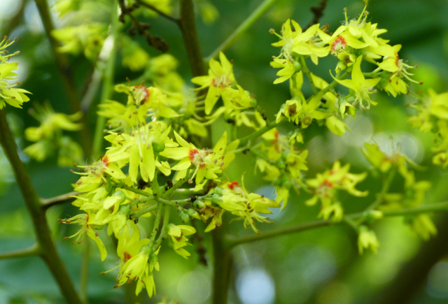 落叶乔木。花序顶生,有花数朵,花冠黄色。果膜质,膨大如灯笼,国庆前后成熟,成串挂在枝顶,如同花朵,又名“国庆花”。