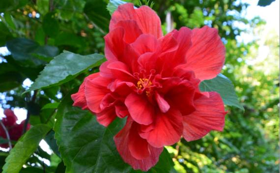 常绿灌木。花单生,大,有单瓣花和重瓣花,常见花色有红、白、黄、粉、桃红等。