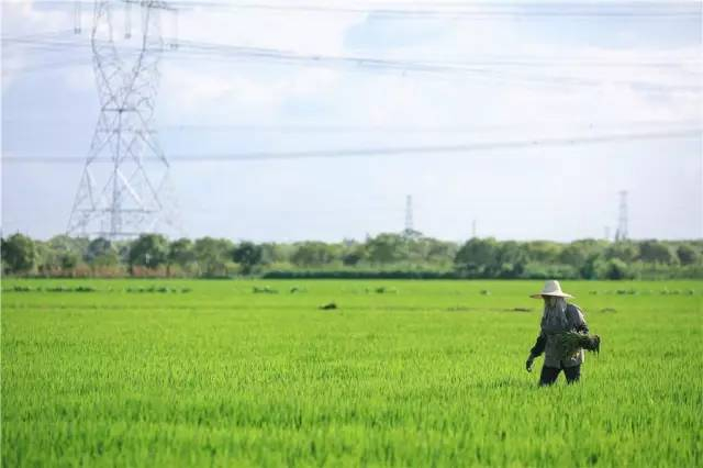 勤恳劳作的农人在绿色中忽隐忽现。