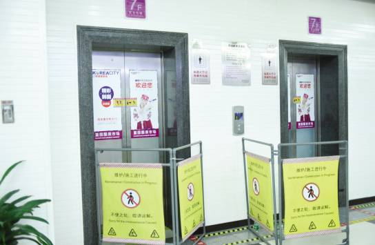 据了解,事发现场位于篁园市场二号中庭36号电梯。当记者赶到时,事故电梯已停运,电梯口拉起了警戒线,另一侧的观光电梯仍在正常运行。此时,市场内仍聚集着大量围观市民。