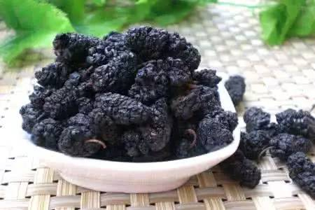 桑葚干是目前水果及其制品中含天然铁最丰富的,每100克含铁42.5毫克,无愧于水果中“补血果”的称号。