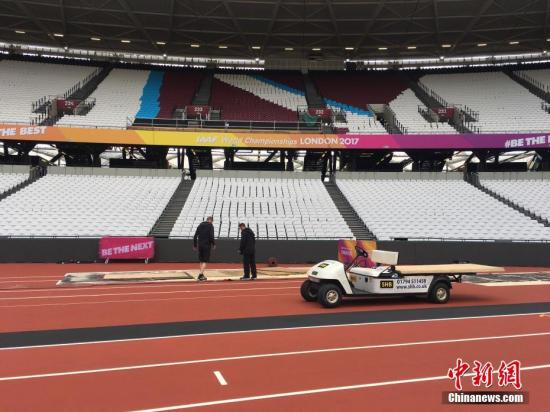 资料图:2017年田径世界锦标赛于北京时间5日凌晨在英国伦敦开幕。图为开赛前,在2012年的奥运会比赛场地“伦敦碗”,各项准备工作正在紧锣密鼓进行中。中新社记者 邢翀 摄