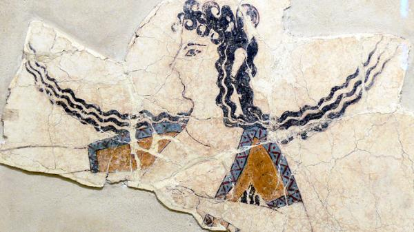 米诺斯文明时期克里特岛首府克诺索斯的壁画上,一个正在跳舞的米诺斯女性