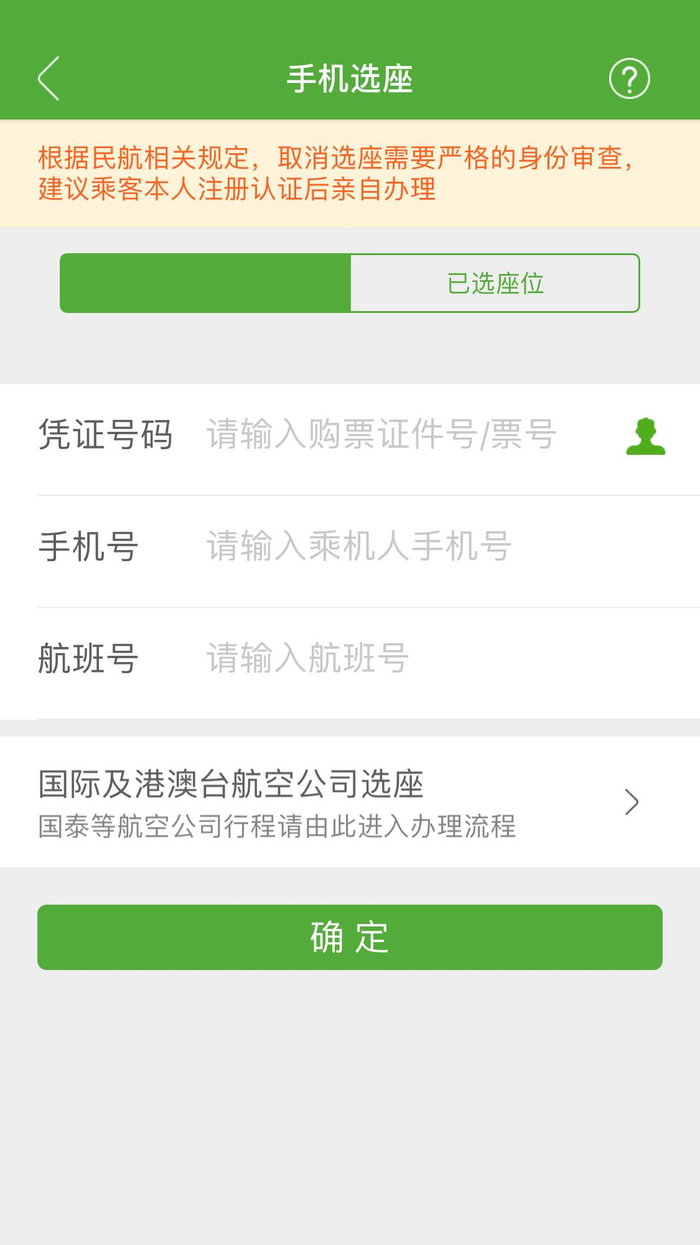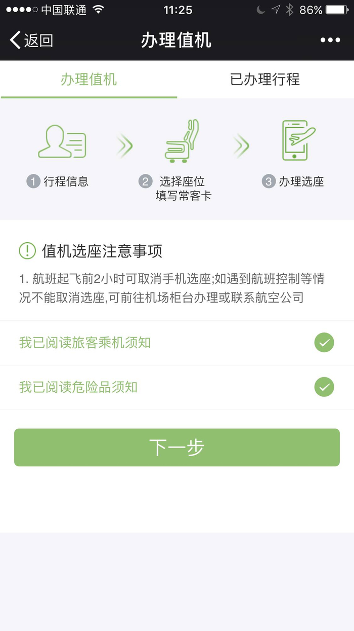 航旅纵横App值机界面