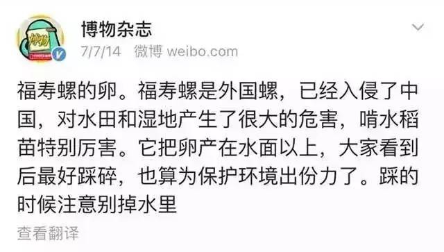 @博物杂志 曾说,遇到福寿螺的卵,最好踩碎!也算是为保护环境出力了!