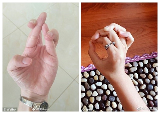 7月31日,央视美女主持人李思思在微博上po出“手指打结”挑战照。中国网友纷纷模仿,并评论说“手指打结”更容易完成,当然单手完成难度还是非常大。