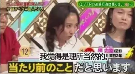 之后,节目又讨论了所谓的在日本旅行的中国游客的种种不文明行为,比如说中国人在超市购买零食,还没有付账就先打开包装吃了起来。而现场华人嘉宾中的一位女嘉宾竟然解释称,她在中国的时候也认为这是理所当然的事情。