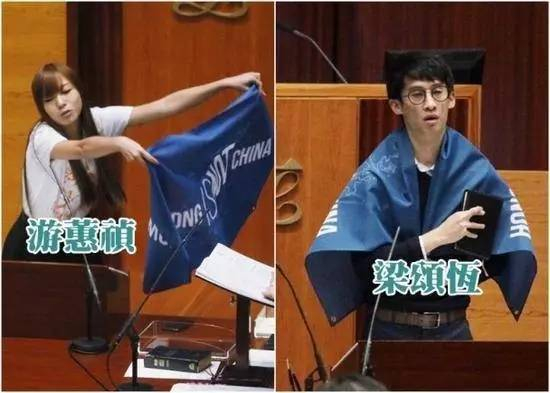 据香港媒体报道,这两位议员分别叫做梁颂恒、游蕙祯,此二人在宣誓仪式上当众展示写有“香港不是中国”的蓝色旗帜,并在宣誓时更改誓词内容,称效忠“香港民族”,并将英文誓词中的“China”故意读为具有辱华意味的“支那”。