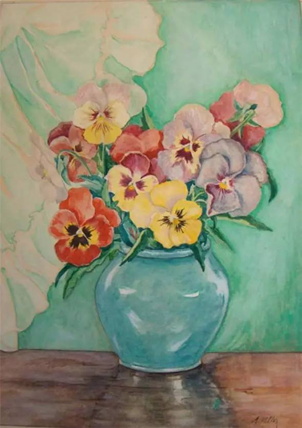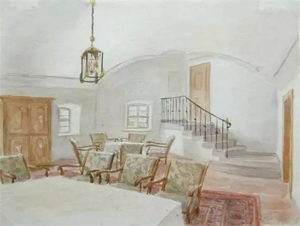 他的水彩画《刺绣》,