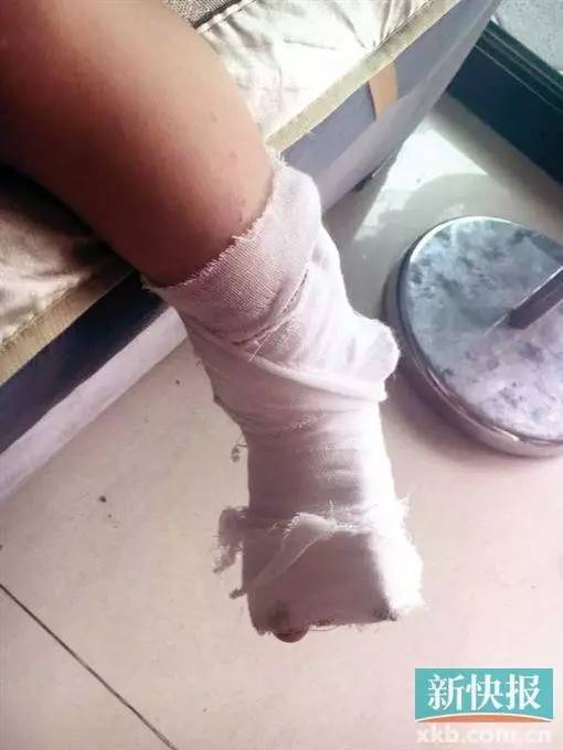 ■男童的左脚脚趾在意外中被夹伤。受访者供图