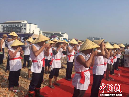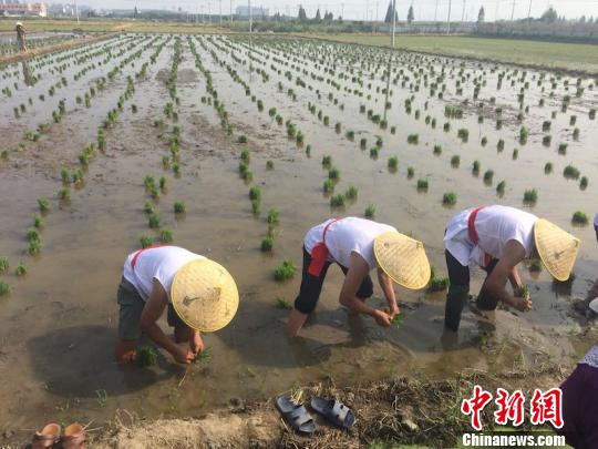 中新网绍兴8月5日电(见习记者 陈洁)喝了一碗绍兴黄酒,炎炎烈日也抵挡不住开耕农户下田插秧的十足干劲。经历夏耕、秋收、冬酿、春藏,绍兴黄酒于周而复始中延续古老的生命,今年糯稻又将开耕。5日上午,独具酒乡、水乡特色的第二届“开耕节”在浙江绍兴黄酒小镇东浦片区的青龙畈糯稻种植基地举行。