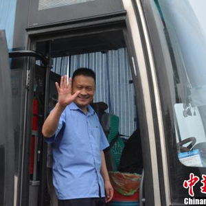 双沟东入口,李师傅驾驶的大客车成为首辆驶入的车子。 朱志庚 摄