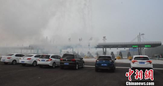 徐明高速苏皖省界,众多车辆在鞭炮声中等待首先通过。 朱志庚 摄