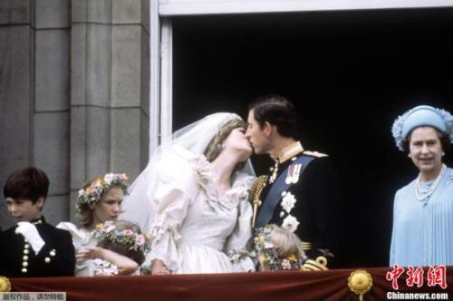 资料图:1981年7月29日,查尔斯王子在英国圣保罗大教堂迎娶他的新娘——新威尔士公主戴安娜。女王伊丽莎白二世出席了长子的婚礼。