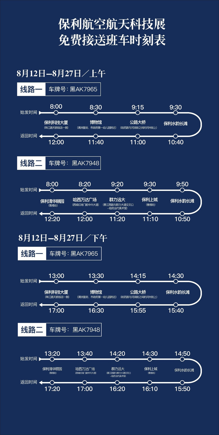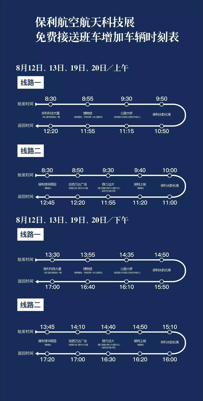 由于本次航空航天展阵容过于强大,展品众多且十分罕见珍贵,吸引了众多市民的咨询与关注。为了避免展览期间停车拥堵,给大家带来不便,所以,贴心的保利免费为广大市民提供看展接送班车,营造更加舒适畅快的看展之旅。