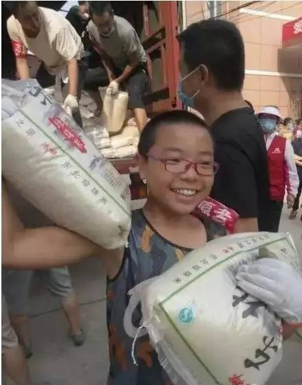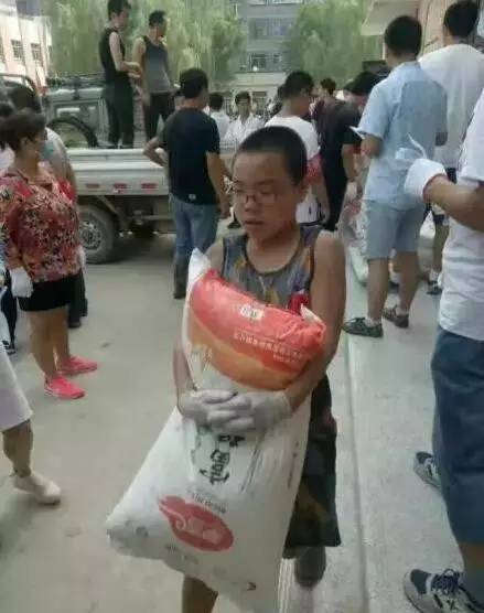近日,一张小男孩累瘫在矿泉水“山”旁的照片走红。12岁的他是抗洪“最小志愿者” ,一天就背了70多袋面。