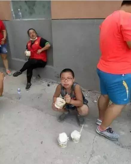 最近,一张小男孩累瘫在矿泉水山旁的照片走红网络。