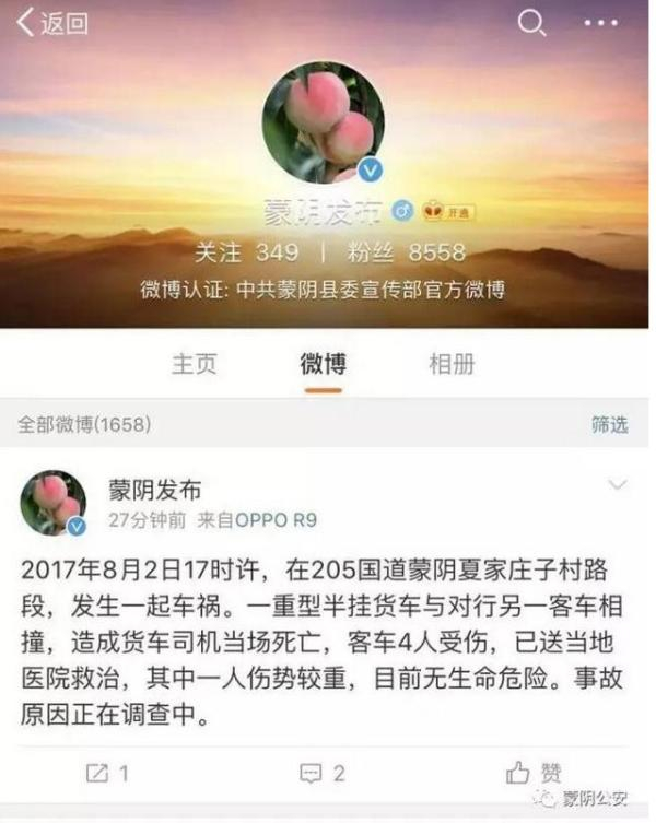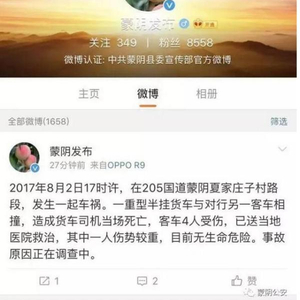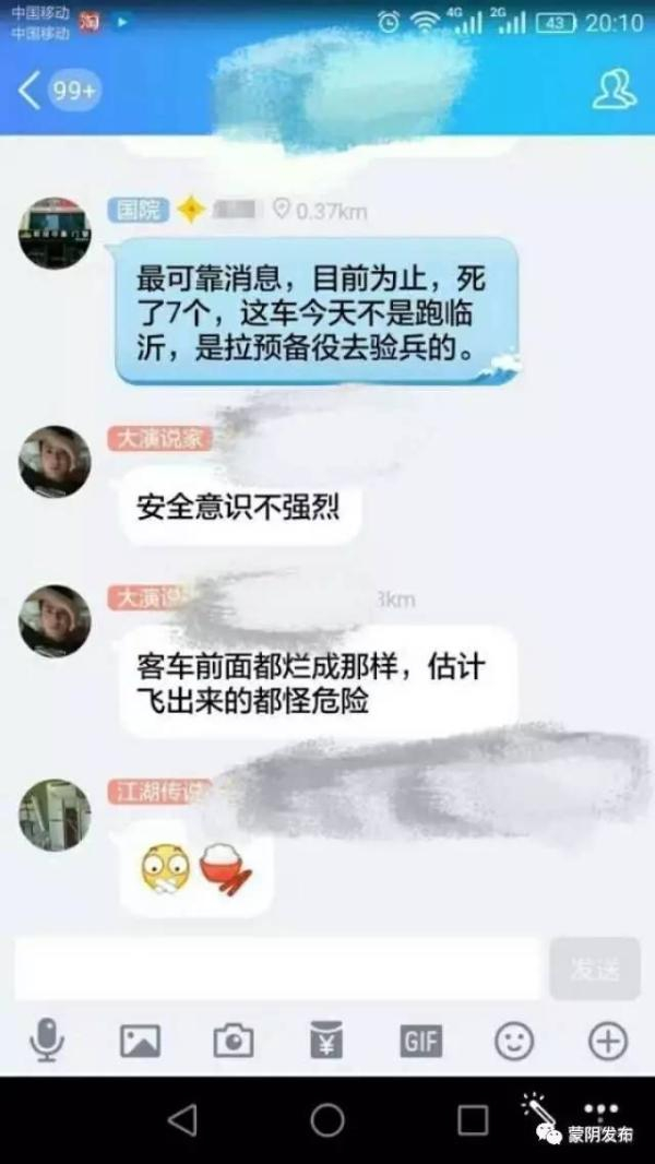 8月2日下午17时许,205国道蒙阴街道夏家庄子附近发生一起重大交通事故,一辆外地的重型半挂货车与一辆临沂的客车相撞,造成货车司机当场死亡,客车上4人受伤。公安机关、县委宣传部等权威部门及时在网上发布了情况通报,可当夜仍有个消息在QQ群、微信圈、贴吧等广为散布:“最可靠消息,目前为止,死了7个人,这车今天不是跑临沂,是拉预备役去验兵的。”这个消息是真是假?一时让看到消息的群众都以为政府故意隐瞒死亡人数,引起网民很多的质疑和谩骂。