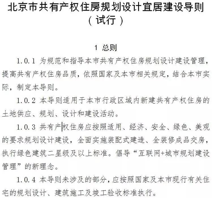 北京对共有产权房的这些要求体现在《北京市共有产权住房规划设计宜居建设导则(试行)》(以下简称《导则》)中。