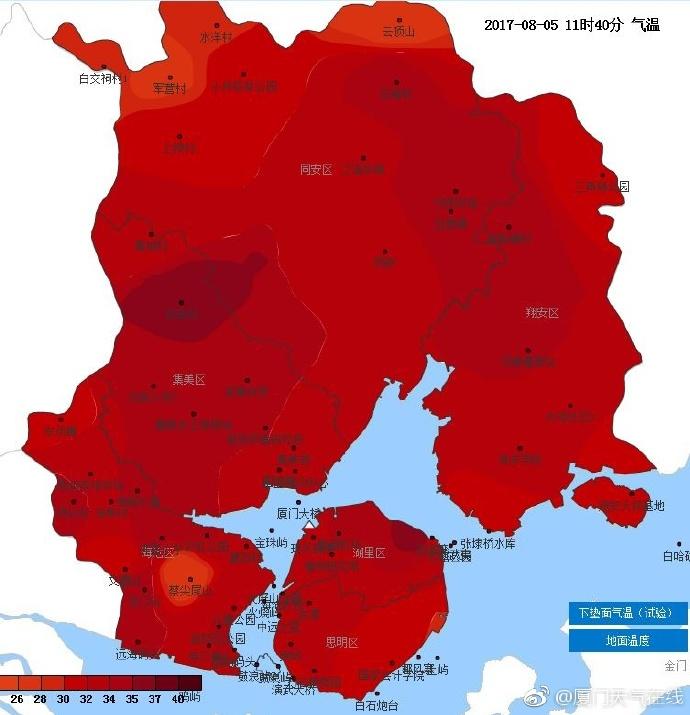 受加强西伸的副热带高压影响,厦门全面开启又一轮的烧烤模式,全市一片大晴天,气温也开始一路飙升。