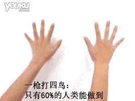 做法也很简单,左手用拇指和食指比划成“八”,代表一支枪,右手比划成“四”,代表四只鸟,然后左右手动作反复交替变换。