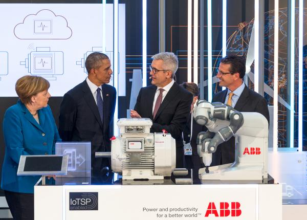 这一矩阵最典型的例子,是ABB在2016年德国汉诺威工博会上向美国时任总统奥巴马和德国总理默克尔所演示的一幕:ABB的人机协作机器人YuMi轻松地将一种袖珍智能传感器贴附在低压电机上,通过无线连接,该传感器可以将电机震动、温度、负载和能耗等关键数据传输到云端。一旦任何参数偏离标准值,它就会发出警报,从而使操作人员在电机发生故障前采取预防措施。