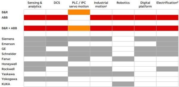 ABB收购贝加莱(B&R)后的产品组合