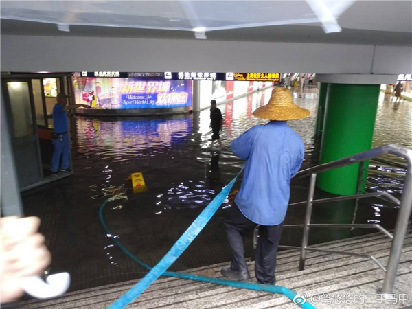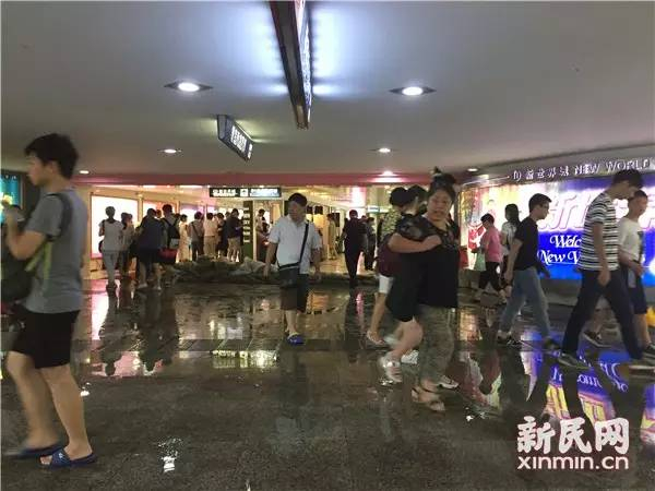 暴雨突袭申城,人民广场下沉式广场地下通道成汪洋。