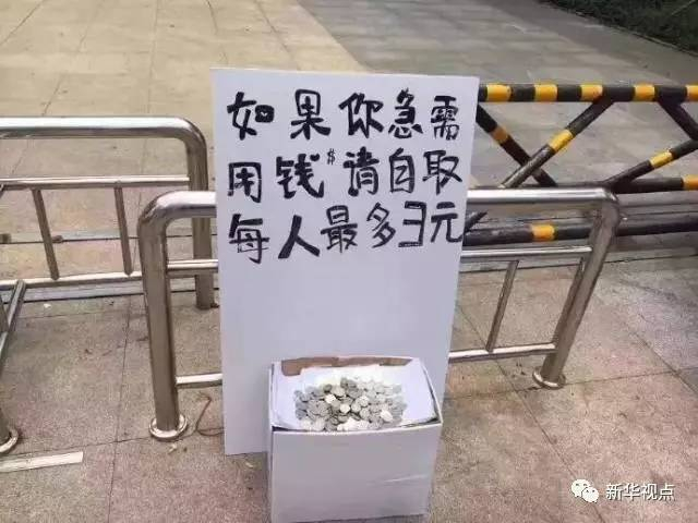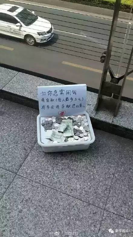 近日,在广州、沈阳、南昌、合肥、苏州等多个城市的街头,出现了供路人救急使用的“硬币箱”。箱子无人看守,一旁立着“按需自取,每人不超过5元”的提示牌,拿多拿少全靠路人自觉。