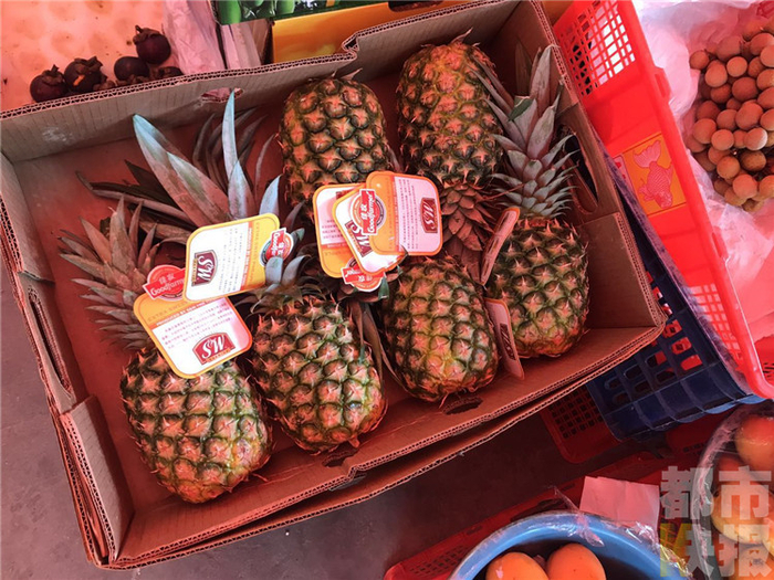 这位商贩说,因为做的是水果批发生意,所以不仅水果多样化,标签更是多样化。