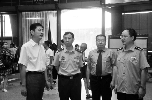 今年8月1日是军人通过铁路出行“依法优先”政策实施首日,在鄂解放军团全国人大代表、火箭军指挥学院教授张金成,全国人大代表、空军预警学院教授熊家军来到武昌火车站实地查看了该站落实“军人依法优先”工作的具体措施,并与武汉铁路局军代处、武昌火车站的同志进行了座谈。湖北省检察院武汉铁路运输分院党组书记、检察长罗继洲,武汉铁路局党委副书记、纪委书记岳震全程陪同。