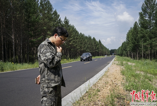 7月14日,河北省承德市围场满族蒙古族自治县塞罕坝机械林场,25岁的技术员刘鑫洋和队友在马路边等待进山踩点,考察植物物种。刘鑫洋的爷爷和父亲都在林场工作,去年10月,她大学毕业后也考入林场。