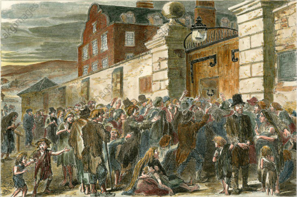 这种普遍贫困使英国固有的自由经济教条失效。最初英国的政策是取消所有输入英国和爱尔兰的保护性粮食进口关税,以降低市场上的面包价格。这一政策对同样遭受了马铃薯晚疫病冲击的英国本土是有效的——哪怕英国最穷的阶级也吃得起除了马铃薯之外的其它主食。然而对于爱尔兰的穷人来说,他们是无论如何都买不起面包的。