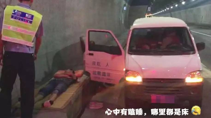 心中有瞌睡,哪里都是床?高速隧道内凉快,男子把车一停,铺张凉席倒地呼呼大睡……