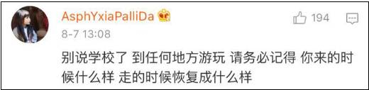 暑假以来,来校参观的旅客确实比以往增加不少,也并不反感有很多人来学校参观,觉得大多数人还是比较有素质的。