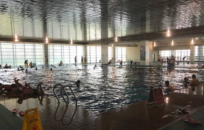 一家带泳池的健身会馆,有点业主会所的感觉,地方不是很大,健身设备不是很多,但比较齐全。泳池的水温不错,没有冻身子的感觉。泳池旁边还有休息区,四面都是玻璃,冬天可以看雪景!