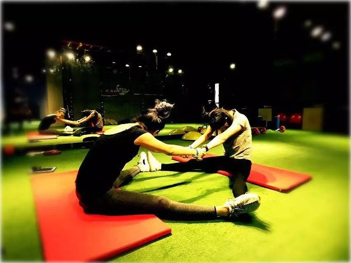 团课教室用来上各种瑜伽、蹦床、踏板等课程,还有眼下流行的空中瑜伽课,很棒!这里的团课老师特别有耐心,对于初学者来讲,都会悉心的纠正动作,耐心的指导,让每位学员开心而来,满意而归。