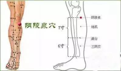 阴陵泉是脾经的主要穴位,在小腿内侧(如图所示),刺激它可以改善脾虚的症状。