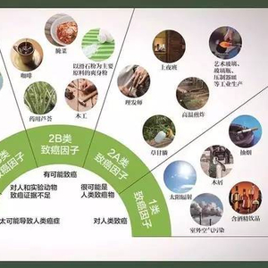 按对人的致癌危险性,国际癌症研究中心将致癌因子分成1、2A、2B、3、4共5类。