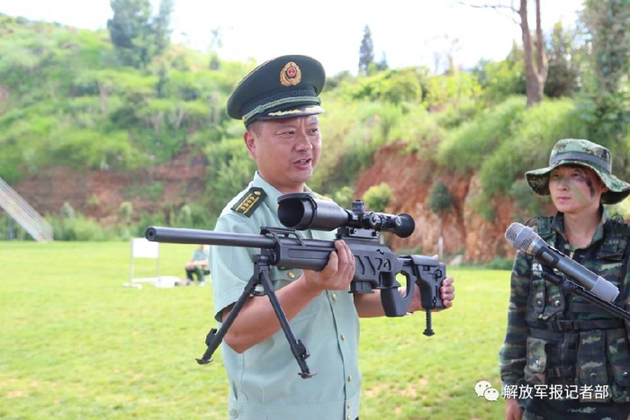 时任武警昆明支队支队长的方红霄在特勤排集训队传授狙击要领(2016年7月10日 廖伟 摄)。