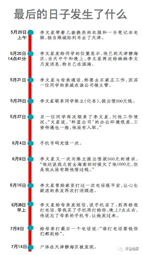记者通过对李文星家人和同学的采访,还原出了李文星赴天津求职55天的脉络。