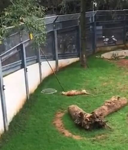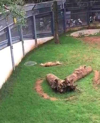 8月6日,一位热心市民拍摄的一段视频中显示,一只成年老虎躺在猛兽区的地上一动不动,疑似已经死亡。