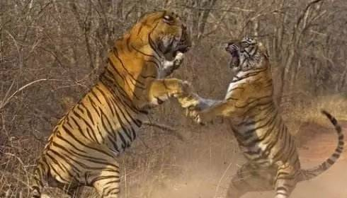 两只公虎相斗,一只被咬窒息而亡
