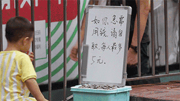 一块白板、一箱硬币,摆放在街头显眼位置,你看到了会怎么做?
