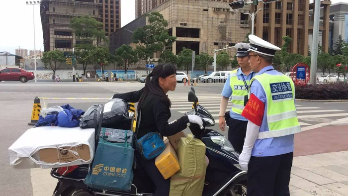 周正艳驾驶的中国邮政绿化三轮摩托车超高载货过来,他被拦下检查,只有可开二轮摩托车的E照,而他驾驶的是三轮摩托车,需D照。他还将要送往西南海的大箱子绑在货厢顶上,超高50公分。魏中队长要求中国邮政快递南三环负责人前来处理。40分钟后赶到的负责人说:"我们会向上级反映情况,快递交通工具如何才能符合交规要求,应该积极与交警沟通。"