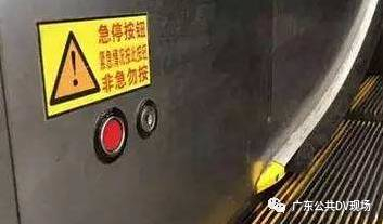自动扶梯一般在扶梯的上中下三个地方都有,一旦发生意外,应立即长按“急停”按钮,直到扶梯停止即可。
