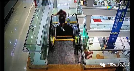 8月1日,东莞塘厦悦港汇商场内,一店铺女员工逆行跑上手扶电梯时,一个不小心打滑摔倒,手被卷进手扶电梯里,整个人瘫坐在电梯上,十分惊险!