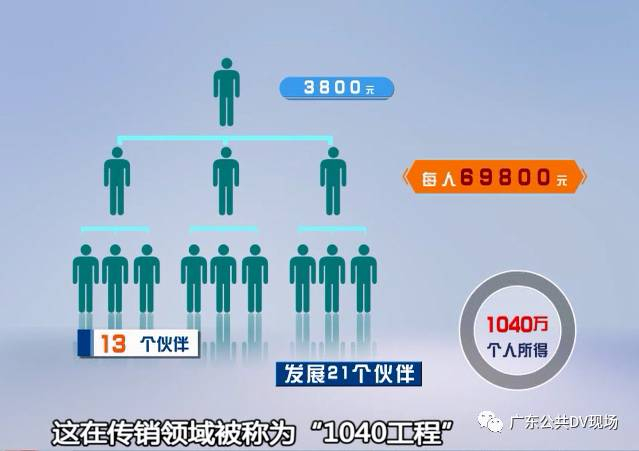 而小曾经历的1040工程,我们节目曾报道过,东莞的王女士在今年5月份,加入一个名叫“自愿连锁经营业”的组织,只要交纳会费69800元,就可以实现1040万元的收益,结果发现是传销。