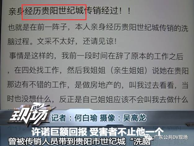 记者搜索资料发现,不少网友反映,曾被传销人员带到贵阳市世纪城“洗脑”。而据公开报道显示,近年来,贵阳警方多次在世纪城进行大规模的打击行动。今年2月19日,就在世纪城龙盛苑清出涉嫌传销人员31人。