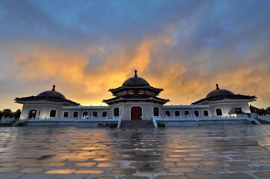 位于内蒙古自治区鄂尔多斯市伊金霍洛旗草原上,距鄂尔多斯市区40公里。由于蒙古族盛行“密葬”,所以真正的成吉思汗陵究竟在何处始终是个谜。史料记载吸收成吉思汗最后一口气——也就是灵魂的驼毛,几百年来就收藏于成吉思汗陵。现今的成吉思汗陵经过多次迁移,直到1954年才由青海的塔尔寺迁回故地伊金霍洛旗。陵园占地约5.5公顷,对研究蒙古民族乃至中国北方游牧民族历史文化,具有极其重要的价值,核定为全国重点文物保护单位。紧邻的成吉思汗陵旅游区为5A级景区。
